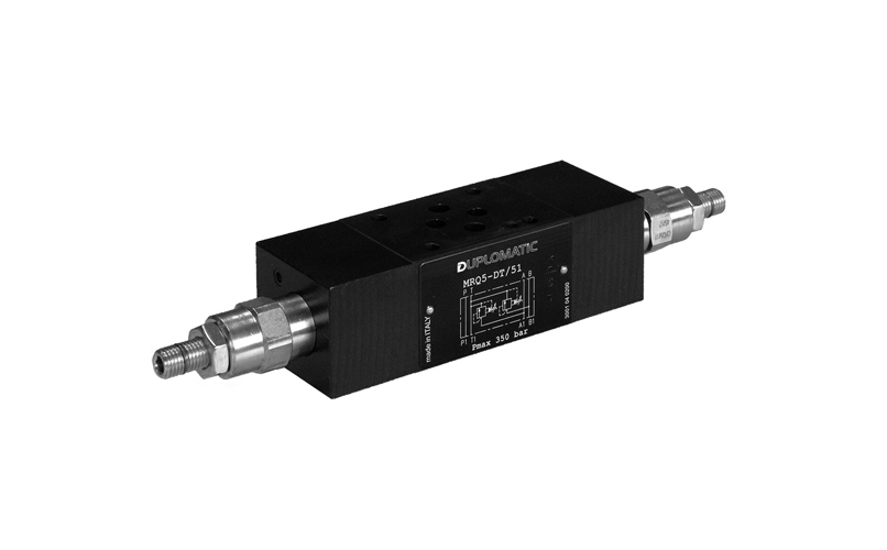 Questa valvola viene impiegata come limitatrice di pressione del circuito idraulico. È fornita con vite di regolazione ad esagono incassato, dado di bloccaggio e limitazione della corsa massima di regolazione oppure con manopola.